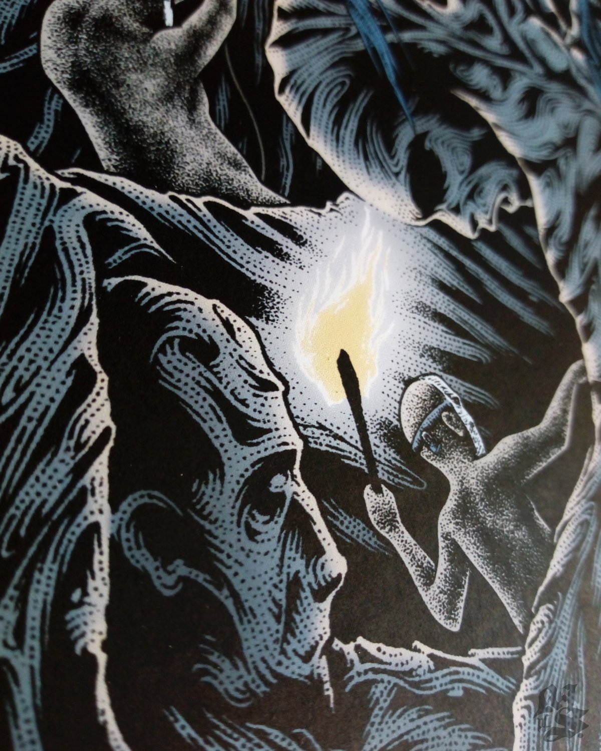 "Caverns II" was originally created between 2018 and 2020 by Mike S. a.k.a. Putrefurnaced Guerrilla Graphics as album artwork for Zebu's "Reek Of The Parvenu" 12" release.