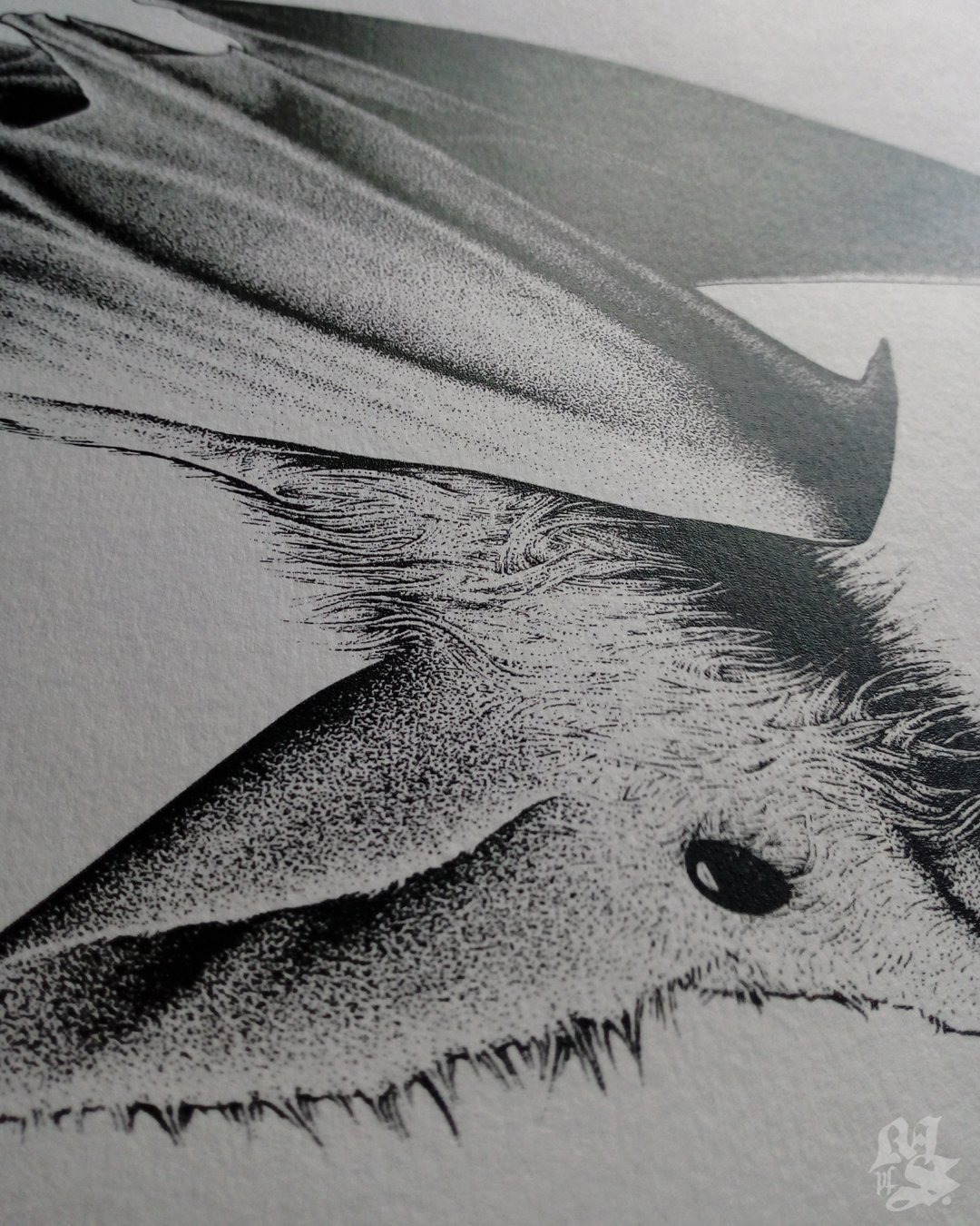 "Ghost Bat" was originally created in October of 2019 by Mike S. a.k.a. Putrefurnaced Guerrilla Graphics as part of the inktober challenge, though unfortunately it took more than one day to complete this illustration.